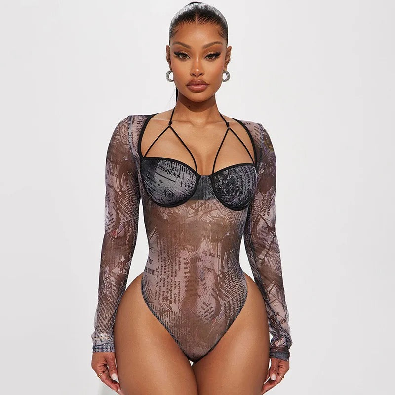 Experience the perfect blend of sexiness and style with our Dolly Bodysuit. Made with mesh material featuring stunning accents of blue and black, this upscale bodysuit will elevate your wardrobe to the next level. Embrace your inner confidence!