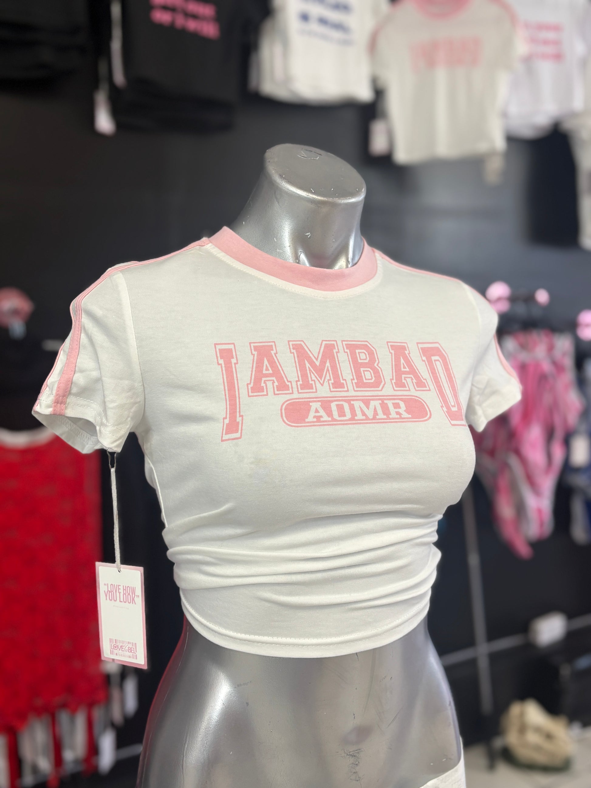 Elevate your style with the I AM BAD TEE. Embrace the softness of our premium cotton and stay cool all day long. The bold pink lettering and matching stripe design on the sleeves add a touch of femininity to this exclusive tee. Perfect for all the baddies out there.