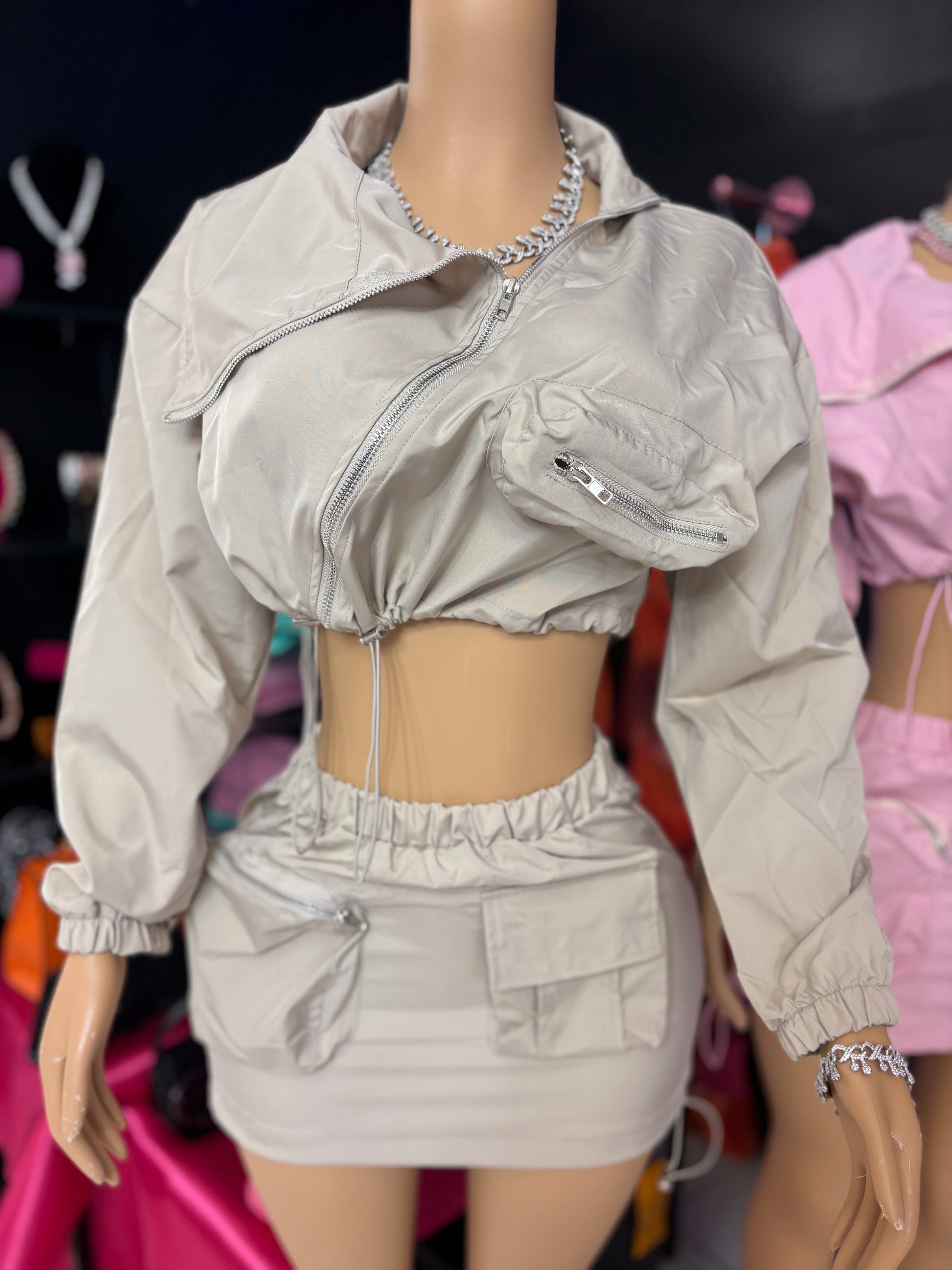 The Lowkey Luxe Set is your new go-to for chill days with high-key drip. This sleek two-piece delivers effortless streetwear glam with a neutral tone that flexes quiet power. Rock it solo or with your baddest kicks — this fit is made to serve lowkey vibes with luxe energy.