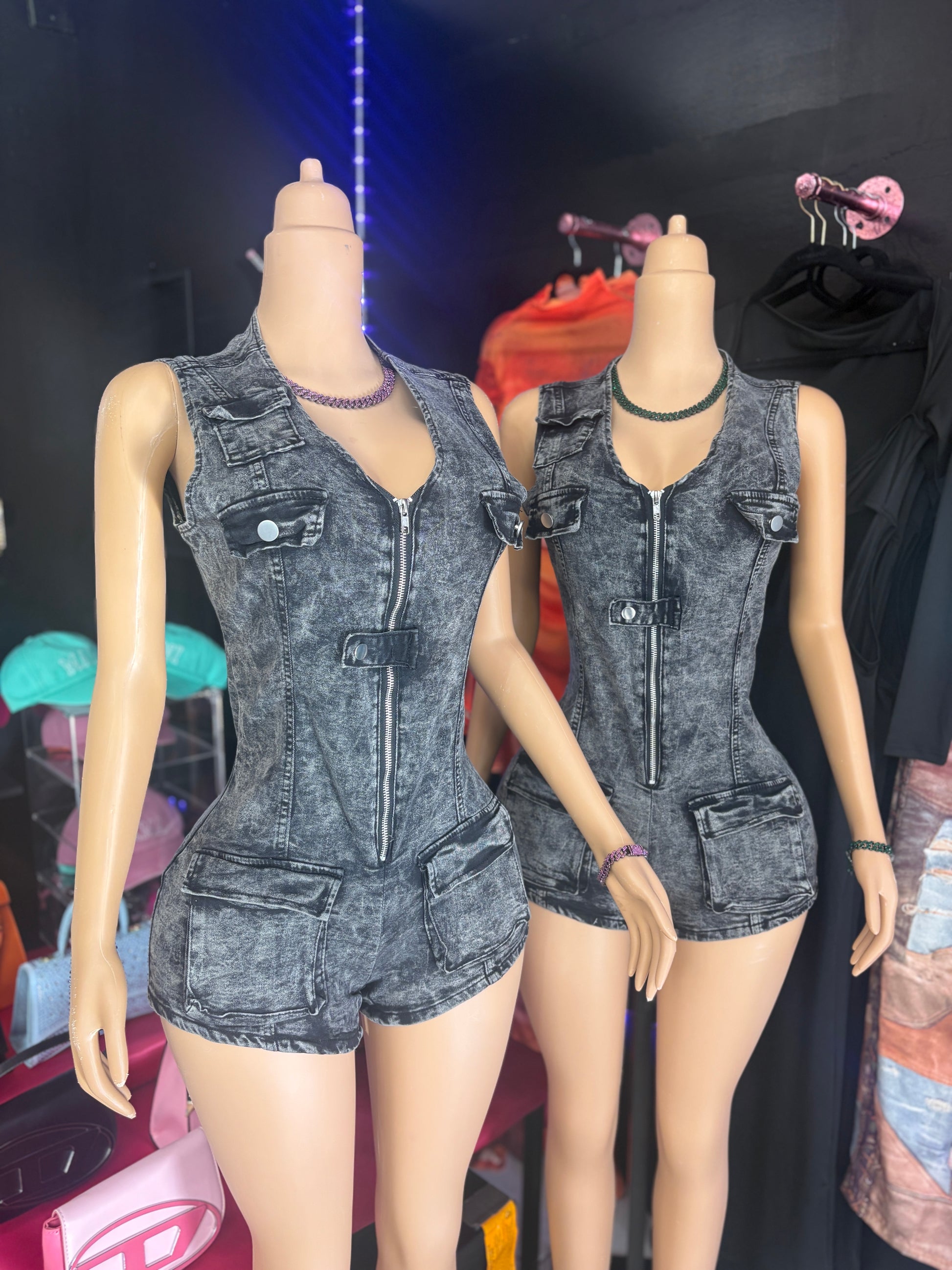 Make room for the romper that’s rewriting the rules — the Cut Different Romper is giving body, edge, and bold baddie energy all in one. This acid-wash denim piece features a structured silhouette that cinches the waist while highlighting every curve. Finished with a real zipper front, deep functional pockets, and durable stretch denim that moves with you — this romper was made for the girl who commands attention without saying a word.